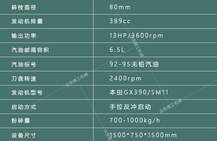 樹枝粉碎機5公分、8公分、10公分,這三種規(guī)格主要的區(qū)別是在參數(shù)上,其它都一樣,接下來簡單看一下。