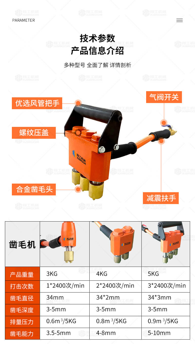 手持式單頭、雙頭、三頭鑿毛機(jī)