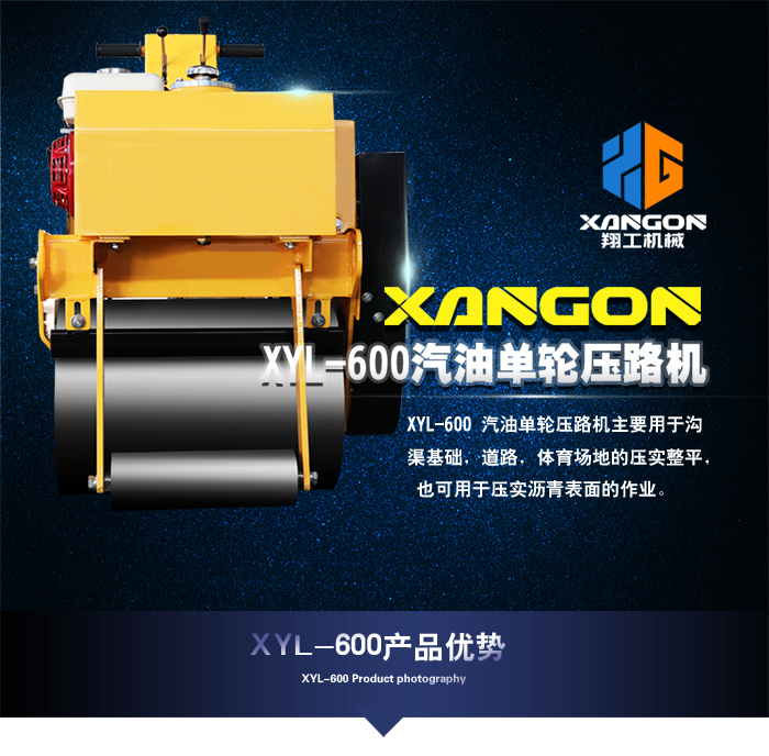XYL-600 汽油單輪壓路機(jī)主要用于溝渠基礎(chǔ),道路,體育場地的壓實整平, 也可用于壓實瀝青表面的作業(yè)。