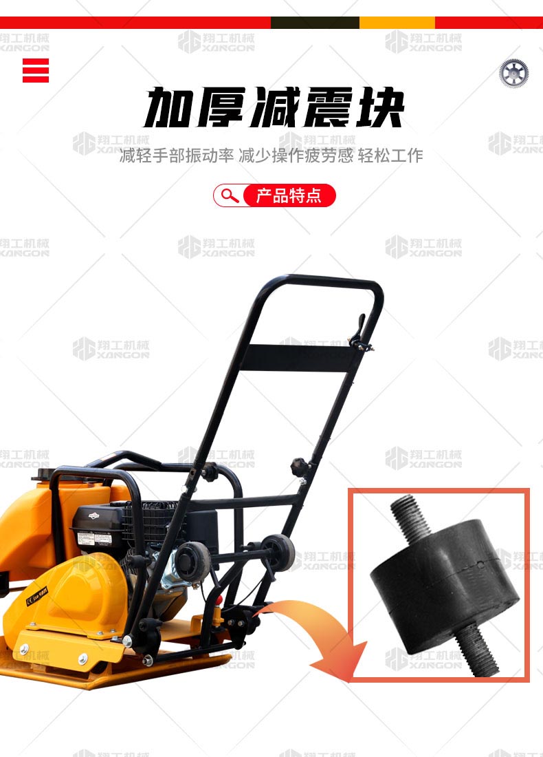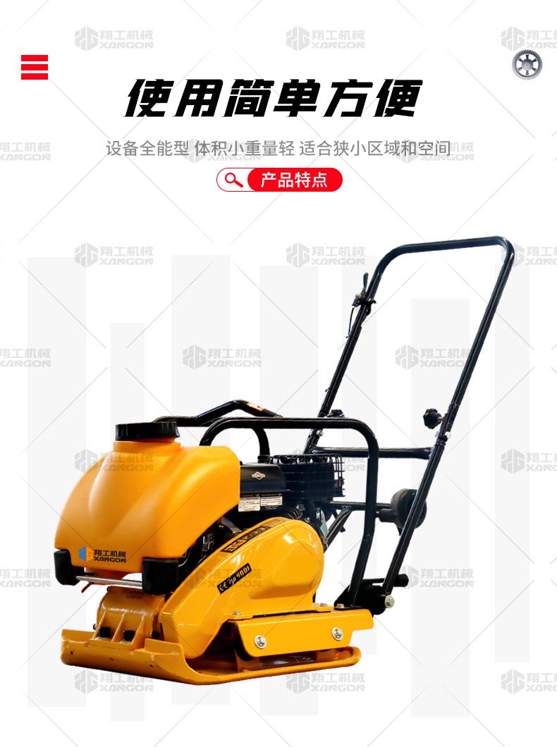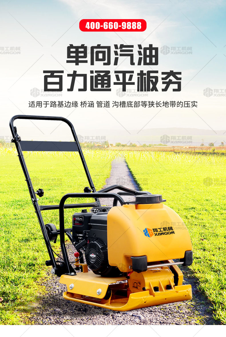 單向平板夯XPB-20適用于路基邊緣、橋涵、管道、溝槽底部等狹長地帶的壓實。 HONDA動力,性能優(yōu)越,啟動容易 采用單獨懸掛式強力減震機構(gòu),減少對發(fā)動機的沖擊,提高操作人員的舒服感;