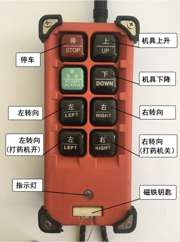 注:遙控器在使用過程中,電池的電量會(huì)影響實(shí)際控制距離,提醒用戶注意檢查,及時(shí)更換電池(2節(jié)五號(hào)電池),長時(shí)間不用應(yīng)將磁鐵鑰匙取下,避免跑電。