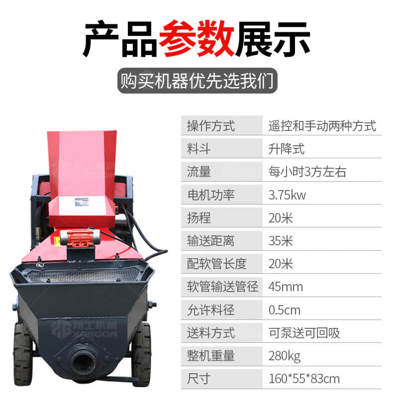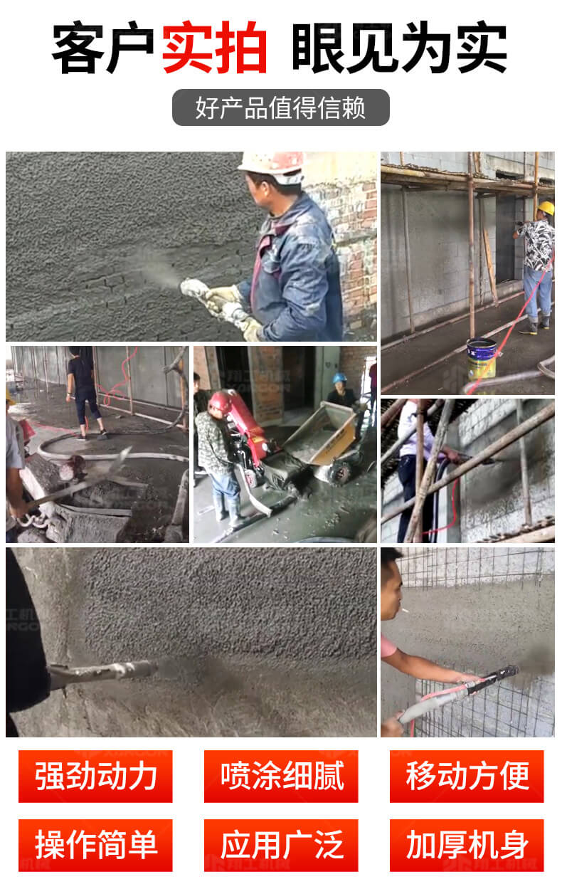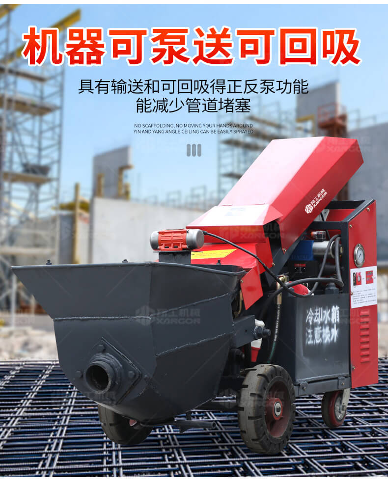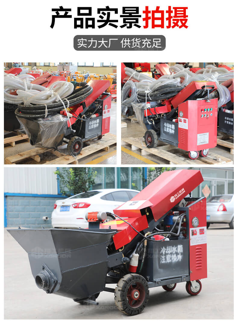 商品預(yù)拌砂漿,石膏砂漿,高標(biāo)號(hào)自拌砂漿,高強(qiáng)無(wú)收縮灌漿料,自流本機(jī)器采用成熟液壓推進(jìn)技術(shù)、泵車(chē)原理,革命性的采用斜體升降式布局,模塊化構(gòu)件,且電機(jī)功率小,揚(yáng)程高、體積小、重量輕等顯著優(yōu)點(diǎn),機(jī)器標(biāo)配全軟管,方便移動(dòng)易施工,改善了以往砂漿泵的體積笨重、磨損快、難維護(hù)的缺點(diǎn)。