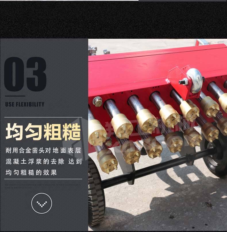 XG-P17A手推式地面鑿毛機,主要為高速公路、高速鐵路的橋面、機場、橋梁、停車場等各種混凝土地面新建鋪裝時對地面表層混凝土浮漿的去除,達到均勻粗糙而設計的。對各種陳舊地面做翻新前的地坪處理;去除破損地面凸起部分;環(huán)氧樹脂地面鑿毛;地面做防滑面;對需二次鋪裝新舊面層打毛等具效率高的鑿毛工具。
