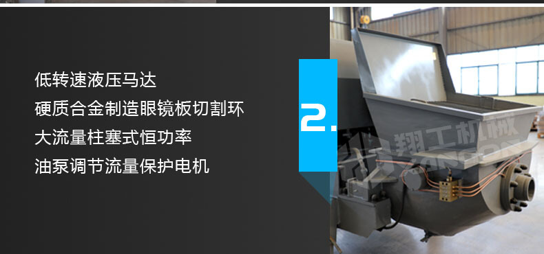 細(xì)石混凝土輸送泵主要用于坡道灌漿、水平地面、隧道澆筑。模板灌漿等。