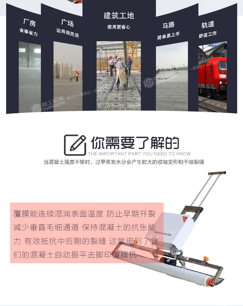 混凝土自動振平去腳印覆膜機主要是用于混凝土澆筑的工作中,此款設備澆筑后會進行覆膜養(yǎng)護,防止水分蒸發(fā)過快造成的脫水,混凝土自動振平去腳印覆膜機助力推動覆蓋薄膜養(yǎng)護普及進程,保證混凝土施工效果。