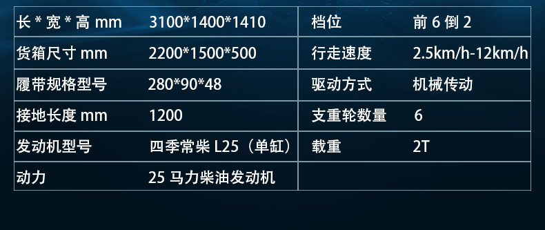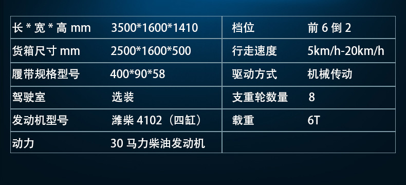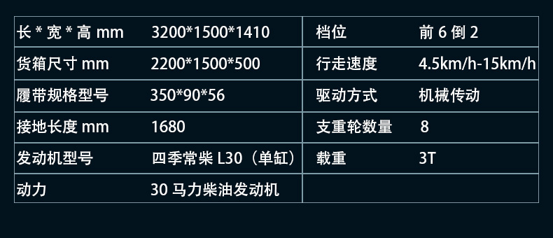 履帶運(yùn)輸車(chē)是專(zhuān)門(mén)提供復(fù)雜路況運(yùn)輸工作的機(jī)器,適用于普通運(yùn)輸車(chē)輛無(wú)法或者不適合通行的地方。履帶運(yùn)輸車(chē)以履帶代替了輪式行走,降低了對(duì)地面的損傷,同時(shí)履帶行走裝置降低了機(jī)器與地面的單位面積壓力,適用于山林、田地、沼澤、沙地、草地、雪地以及土質(zhì)松軟或氣候條件不太發(fā)的接近角和離地角。