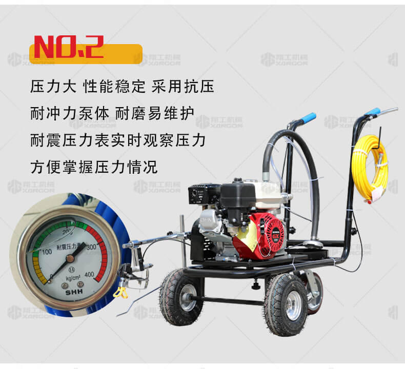 冷噴劃線機(jī)是常溫標(biāo)線施工的專用設(shè)備。主要適用于公路、市區(qū)停車場、機(jī)場等涂劃直線、虛線、曲線、斑馬線、文字、箭頭、圖形標(biāo)志等。形成高壓進(jìn)行噴涂,流量大、壓力穩(wěn)。所劃標(biāo)線線型清晰、附著力強(qiáng)、厚薄均勻、邊齊角齊。具有操作靈活、工作效率高、施工快捷方便、應(yīng)用范圍廣等特點(diǎn)。