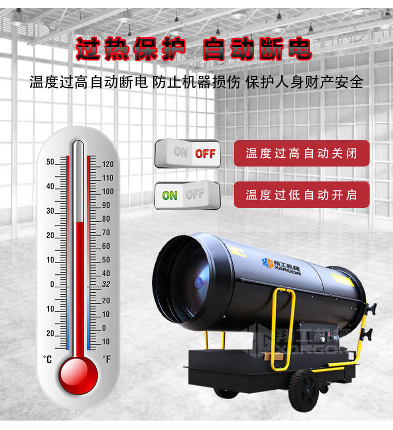 不管是室外還是室內(nèi),只要是需要提升溫度,選擇150KW燃油款暖風(fēng)機就沒錯了,工業(yè)燃油柴油暖風(fēng)機您是通過柴油燃燒散發(fā)大量的熱,通過電機工作,風(fēng)扇把熱量給吹出來,持續(xù)升溫,并且 能自動保持恒溫狀態(tài)!適合養(yǎng)殖,展會,車間等大面積取暖場所。