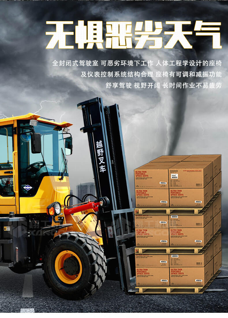 1.普通叉車是兩輪驅(qū)動的,而越野叉車是四輪驅(qū)動的。