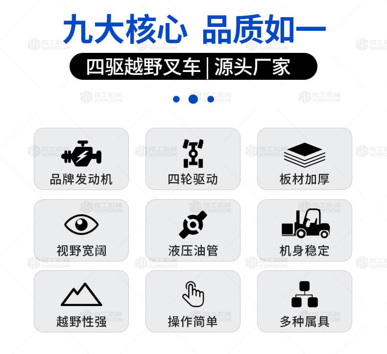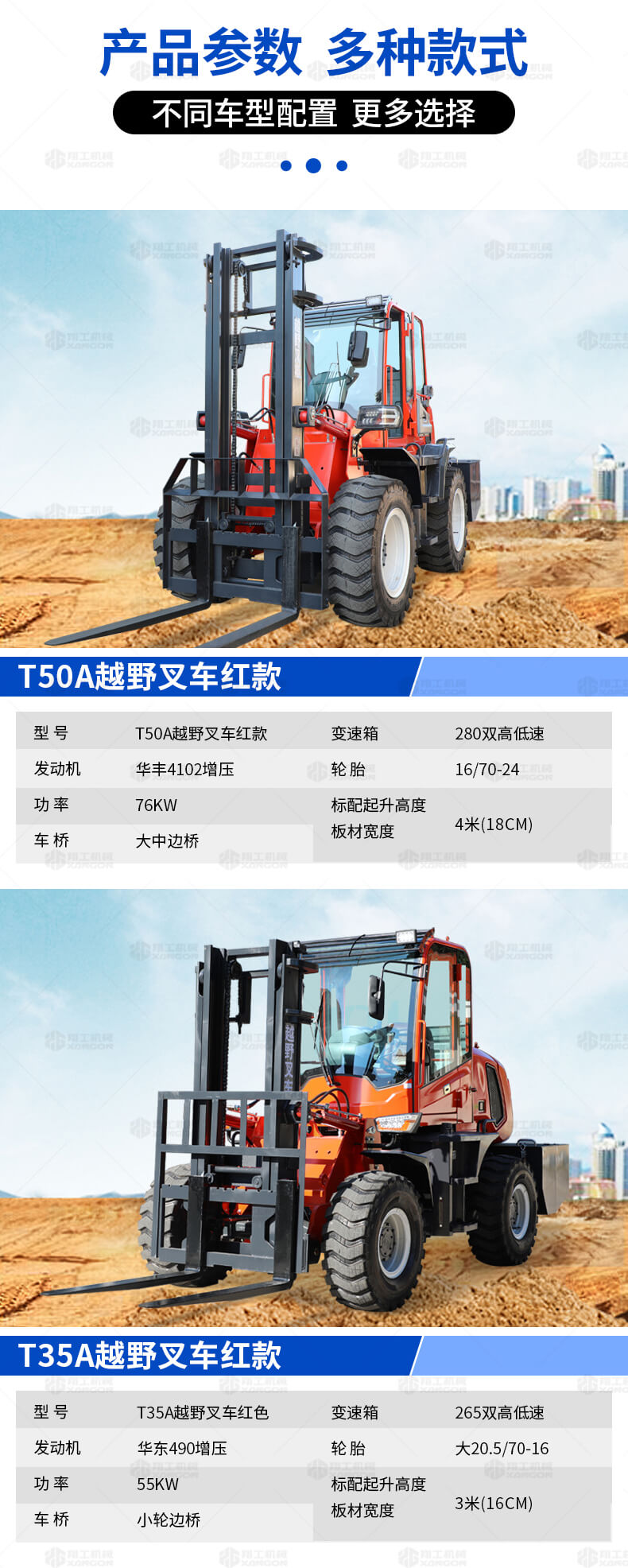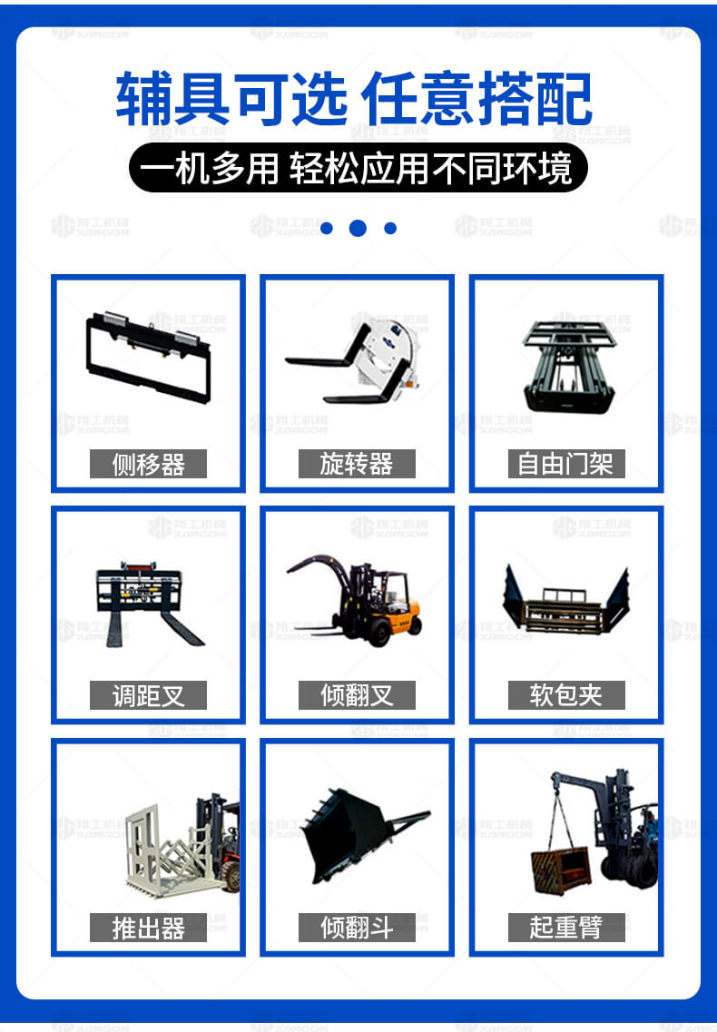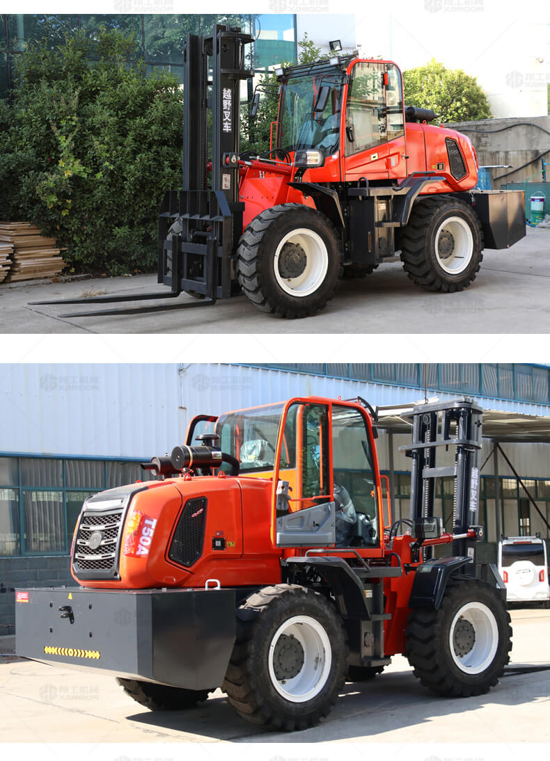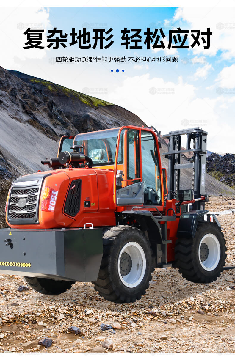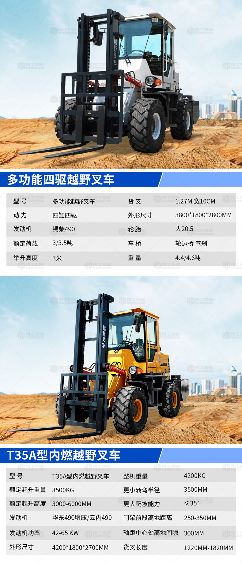 越野叉車可以在坡地和不平地面上進(jìn)行貨物裝、卸、堆垛及搬運(yùn)作業(yè),具有良好的機(jī)動(dòng)性、越野性可靠性。其功能多樣,可搭配側(cè)移器、調(diào)距叉、旋轉(zhuǎn)器、軟包夾、推出器、側(cè)翻叉、側(cè)翻斗、起重臂等工具完成不同的工作。