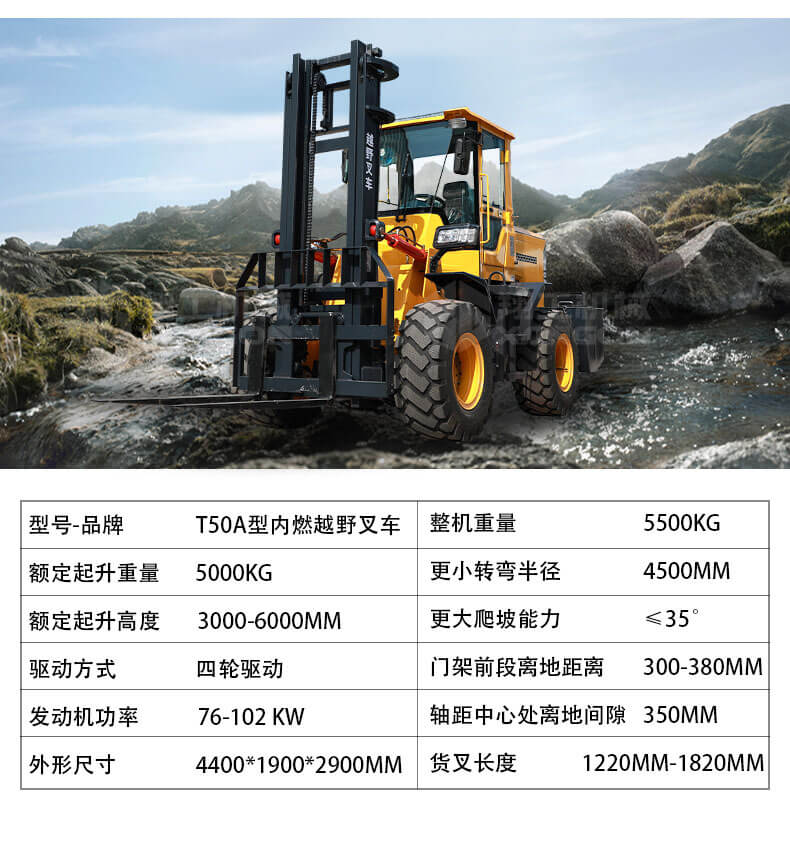 5.越野叉車發(fā)動機功率大,采用全輪驅(qū)動和越野輪胎。