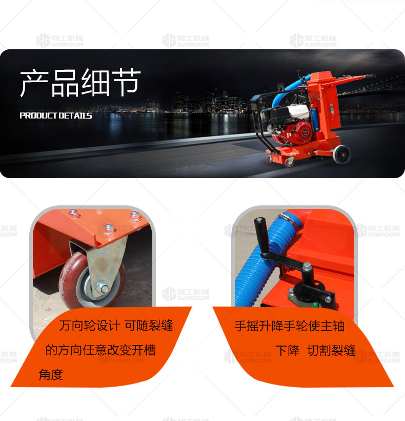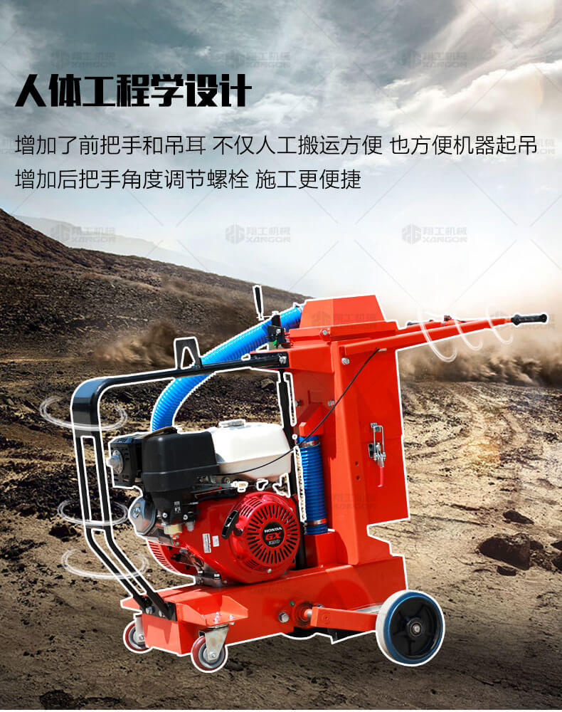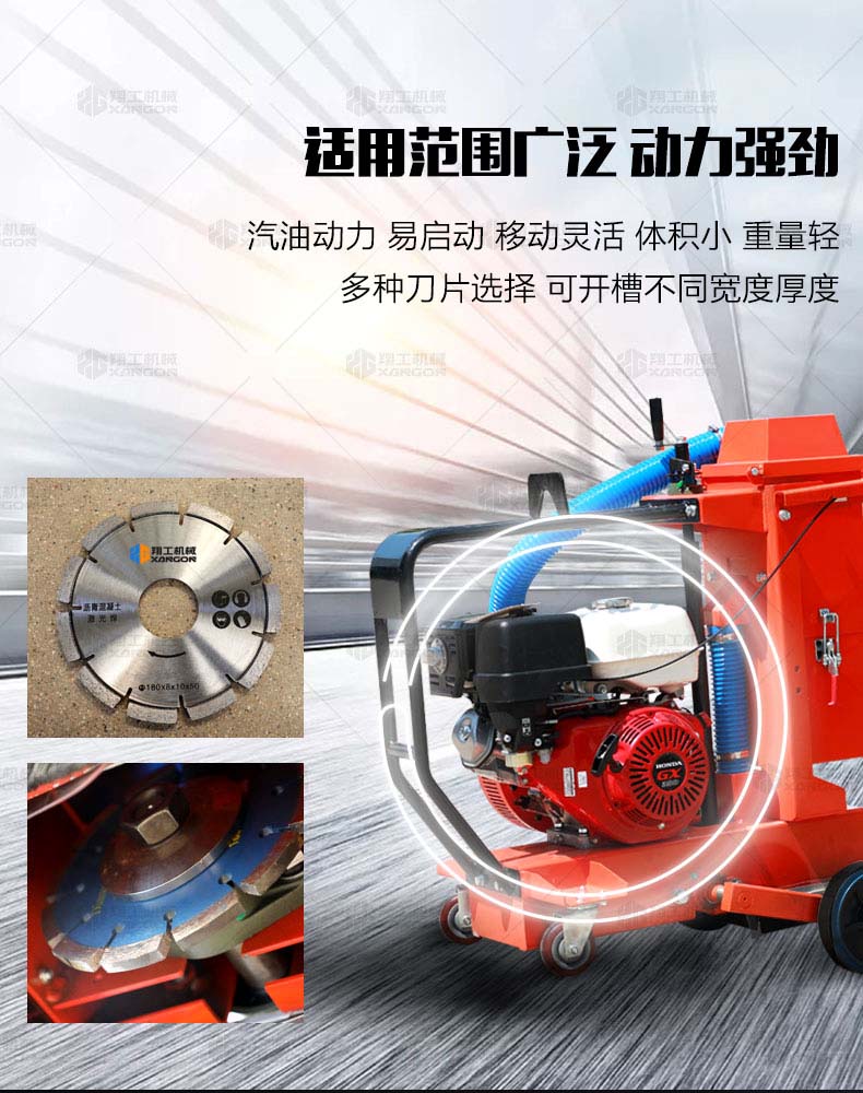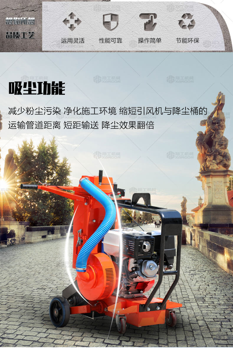 用于對主要用于瀝青、水泥路面裂縫病害處置時的開槽拓寬和清理雜物,為道路灌縫做前期準(zhǔn)備,優(yōu)化灌縫材料與縫槽的接觸層面,加強灌縫材料與縫槽側(cè)壁粘結(jié)的緊密性。產(chǎn)品具有轉(zhuǎn)向靈活、操作方便、工作效率高、跟蹤效果好等特點。