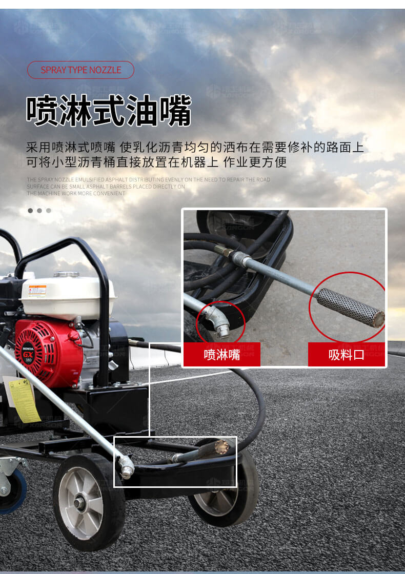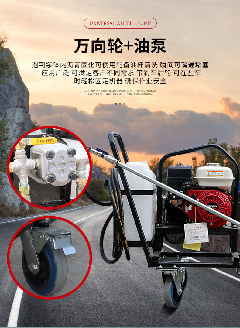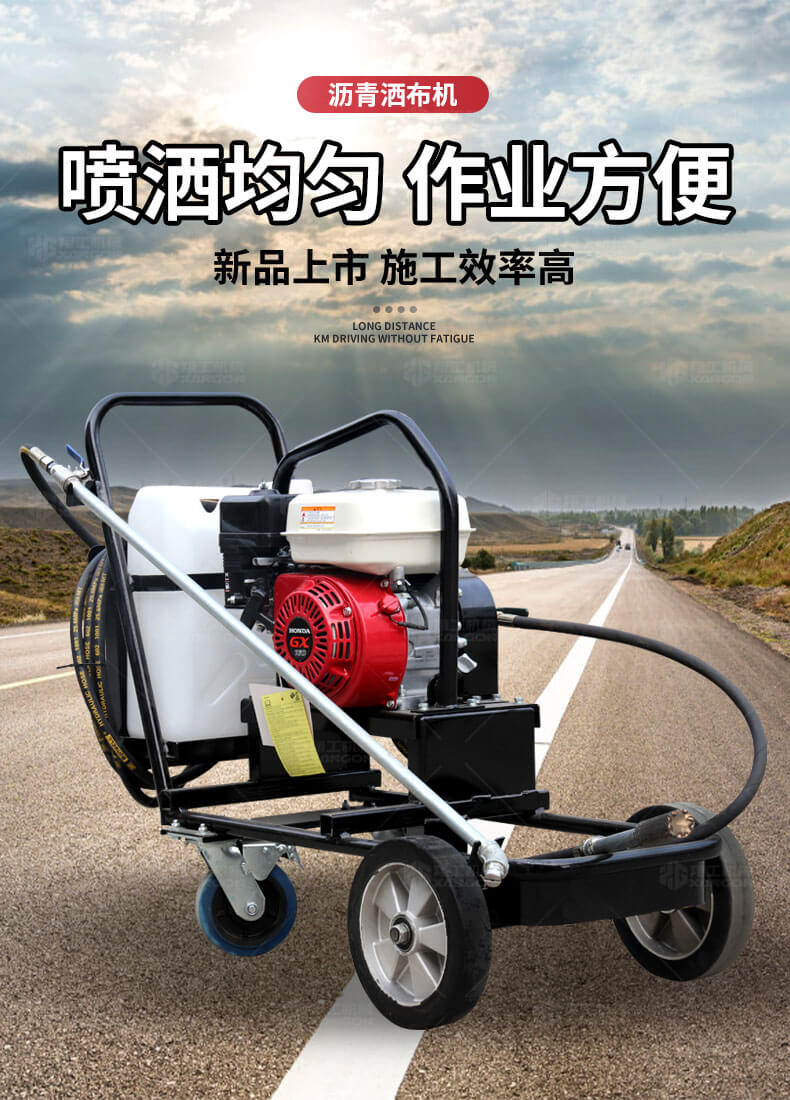 小型乳化瀝青撒布機(jī)用于修補(bǔ)瀝青道路上的坑槽,裂縫或?qū)磳⒗匣穆访孢M(jìn)行表層噴層修復(fù)翻新,由于在養(yǎng)護(hù)瀝青道路時經(jīng)常需要對路面均勻噴灑乳化瀝青或防水材料。