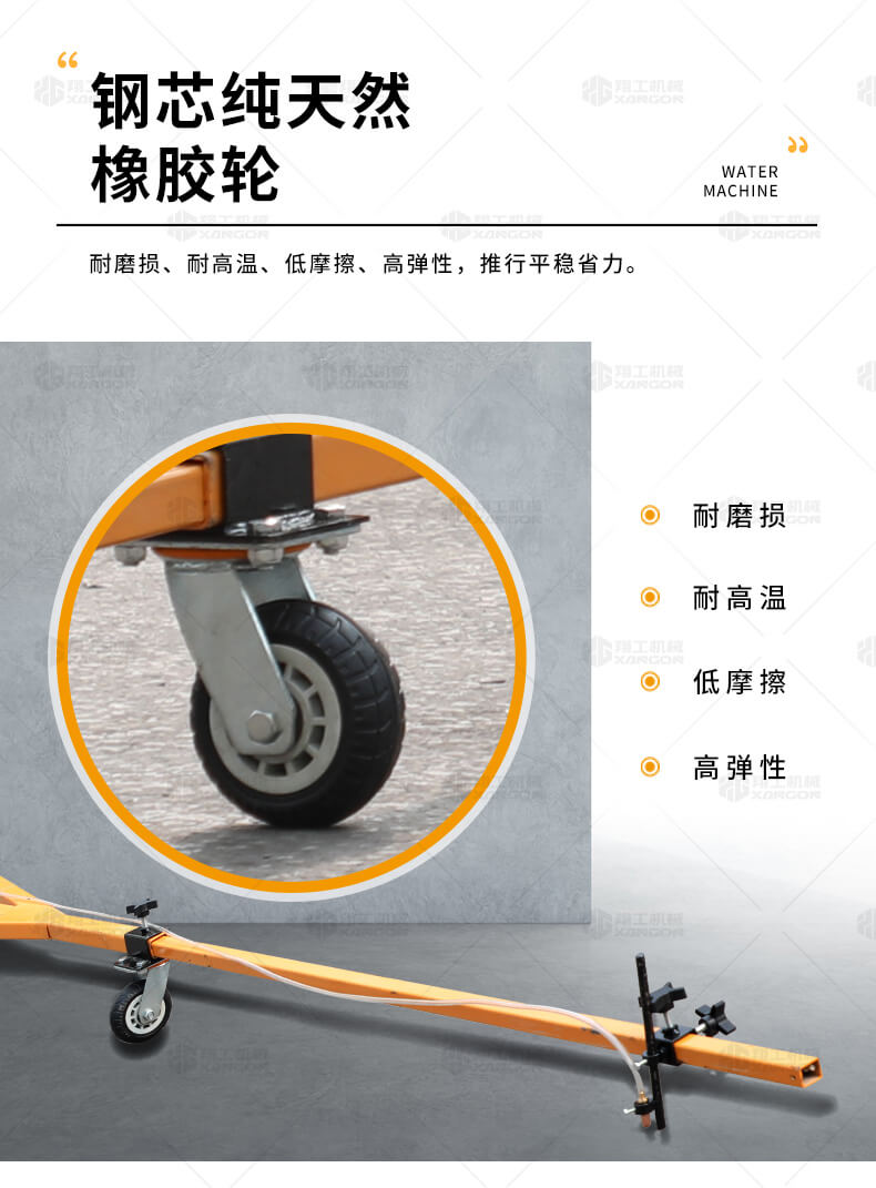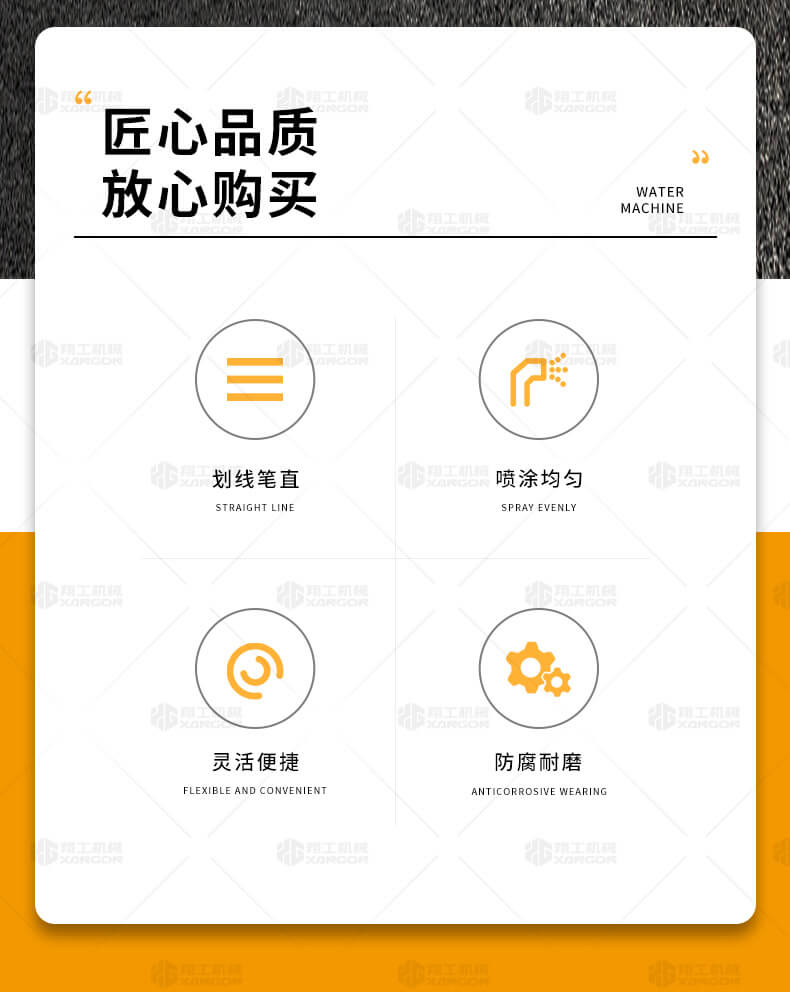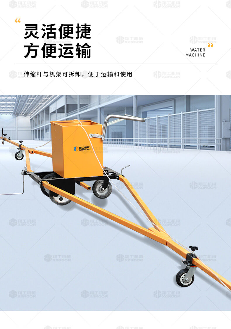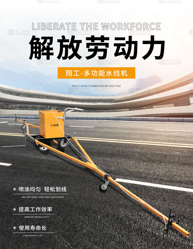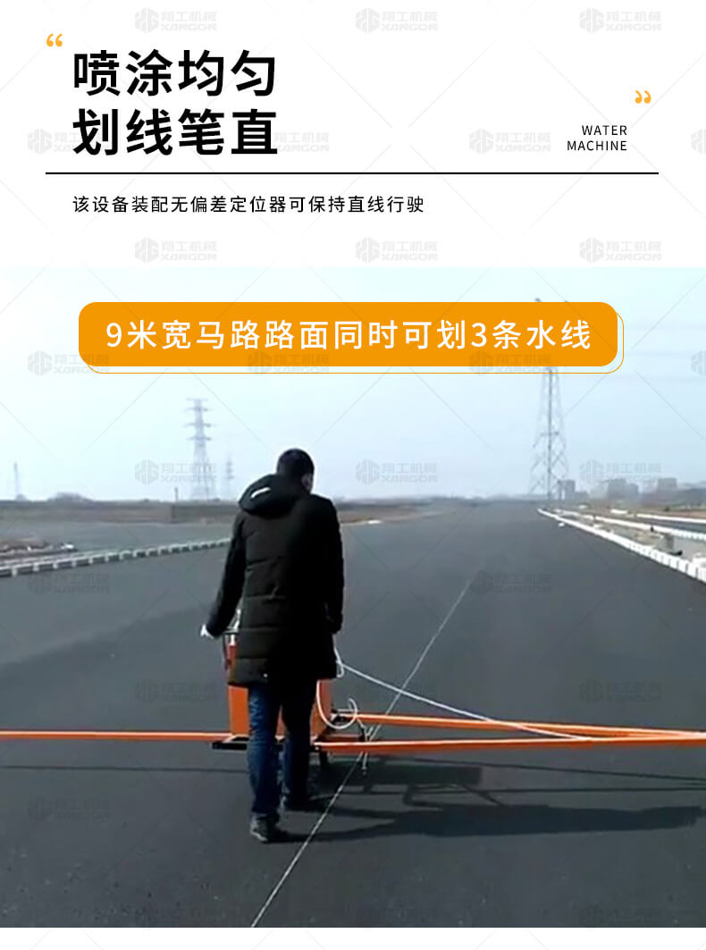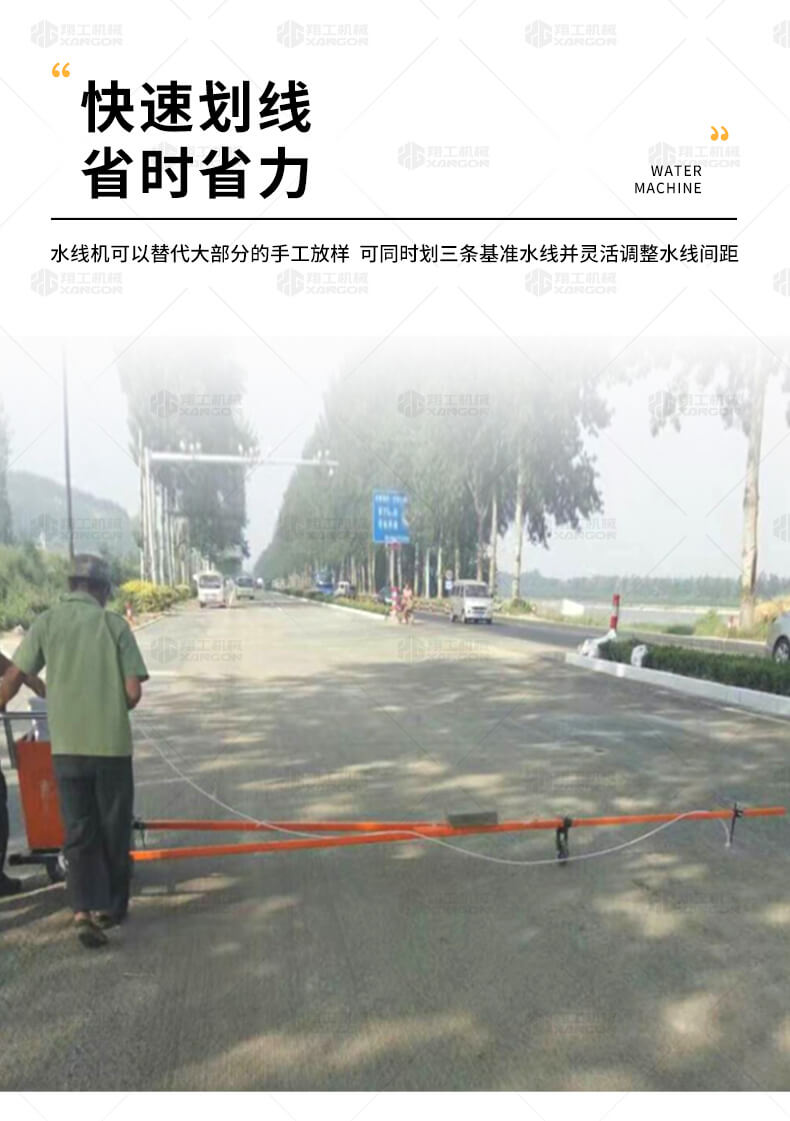 水線車是標(biāo)線施工前序工作中施劃水線放樣的專用設(shè)備。 水線是標(biāo)線施工前必不可少的工序,水線機(jī)可以替代大部分的手工放樣,降低勞動(dòng)強(qiáng)度,提高工作效率,省時(shí)省力。 本產(chǎn)品可同時(shí)劃三條基準(zhǔn)線(水線),可靈活調(diào)整水線間距;水線架和伸縮桿可折疊、拆卸,便宜運(yùn)輸。 在施工前,在所要施劃標(biāo)線的位置上需先涂劃水線,用以引導(dǎo)標(biāo)線劃線機(jī)的施劃。