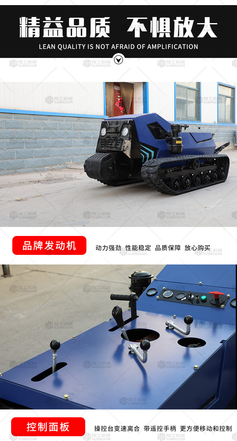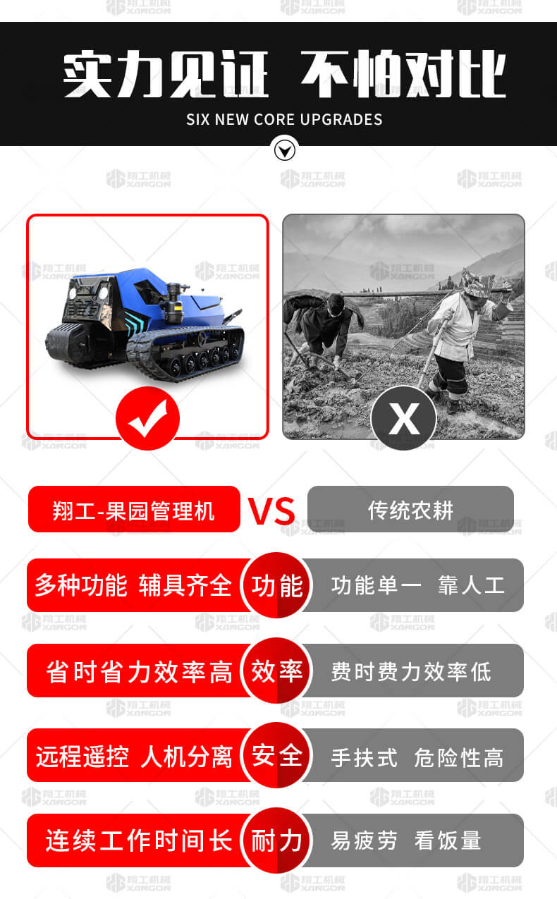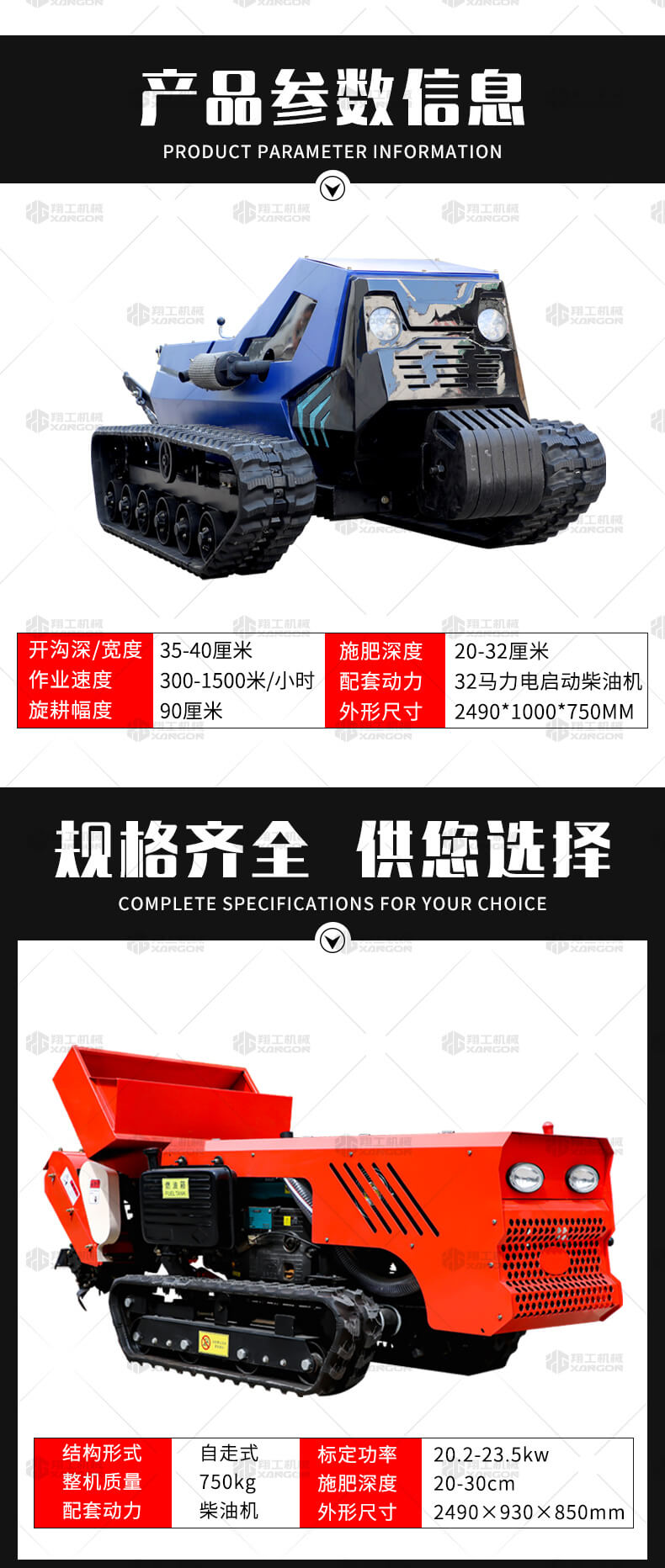 本產(chǎn)品采用履帶式驅(qū)動設(shè)計,穩(wěn)定性和爬坡能力較強,適應(yīng)丘陵山地平原各種地形,機型小功率大,適應(yīng)各種行距的果樹,大棚,園林。產(chǎn)品動力強勁,結(jié)實耐用,性能優(yōu)越,安全放心,遠程操控,省心省力。