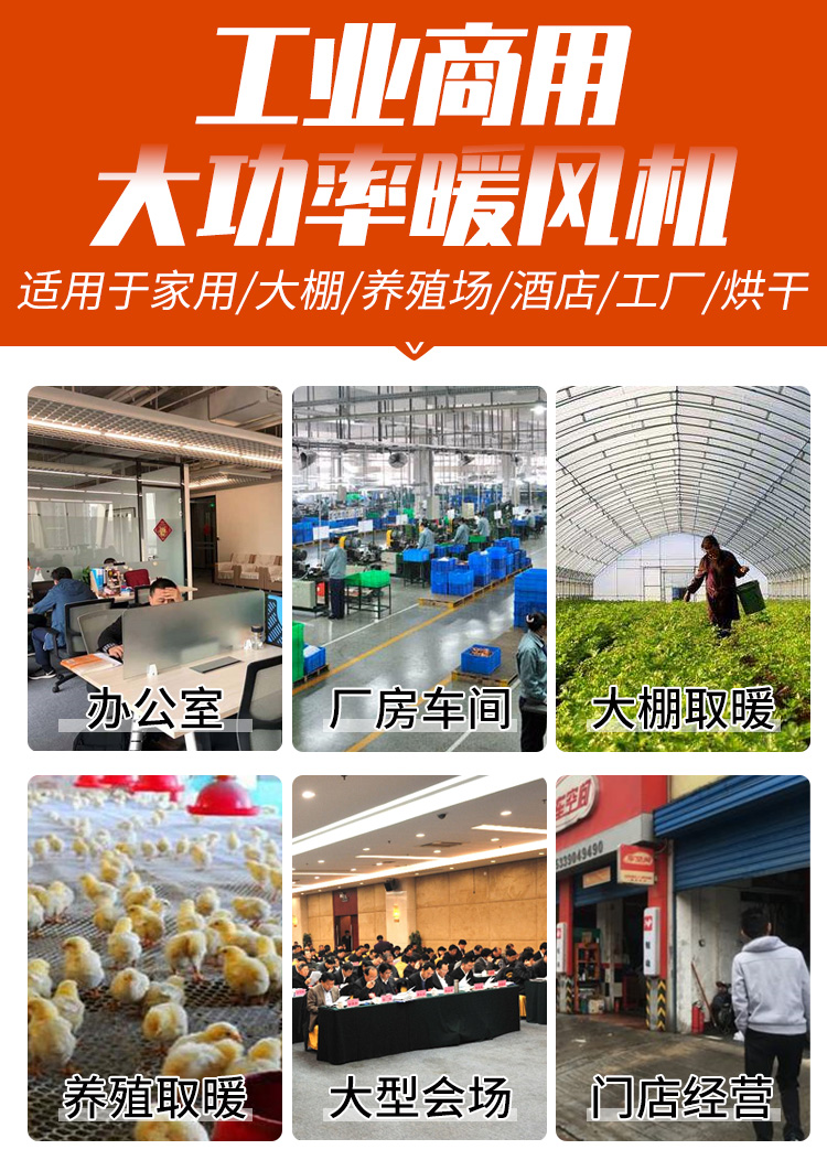 適用于戶外舞臺,廠房車間,大棚種植,養(yǎng)殖保溫,室內(nèi)取暖等。