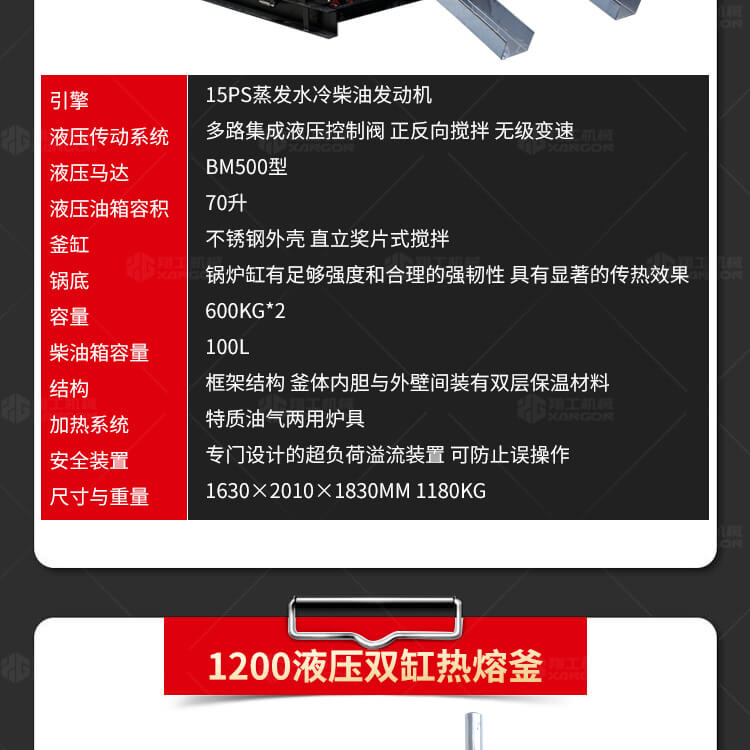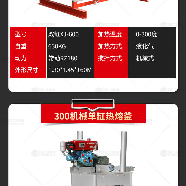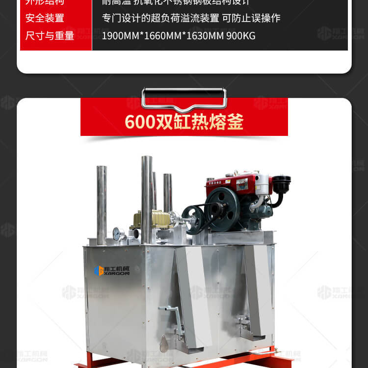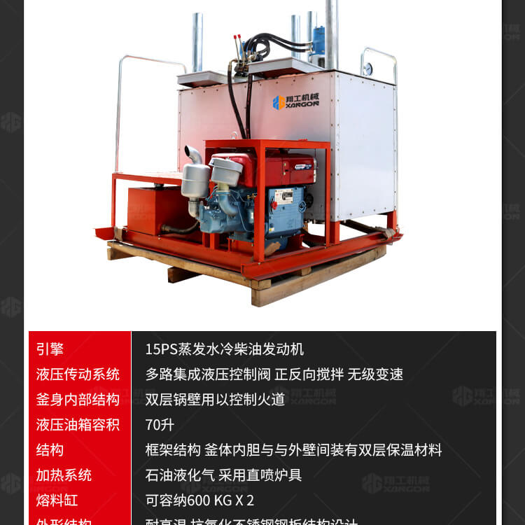 熱熔釜油氣兩用,液化氣和柴油為燃料.