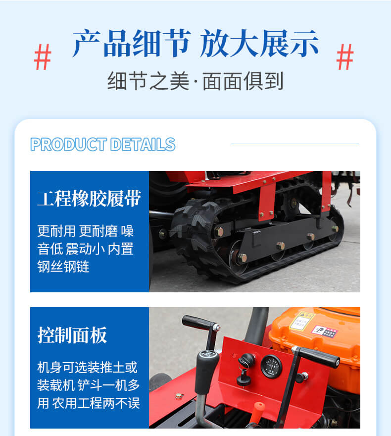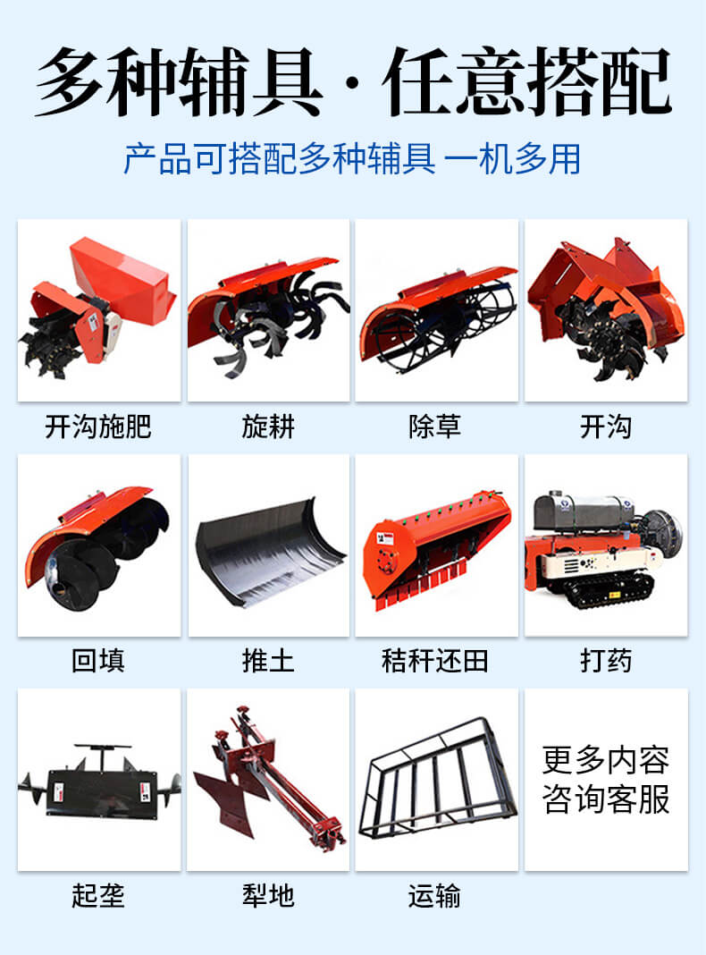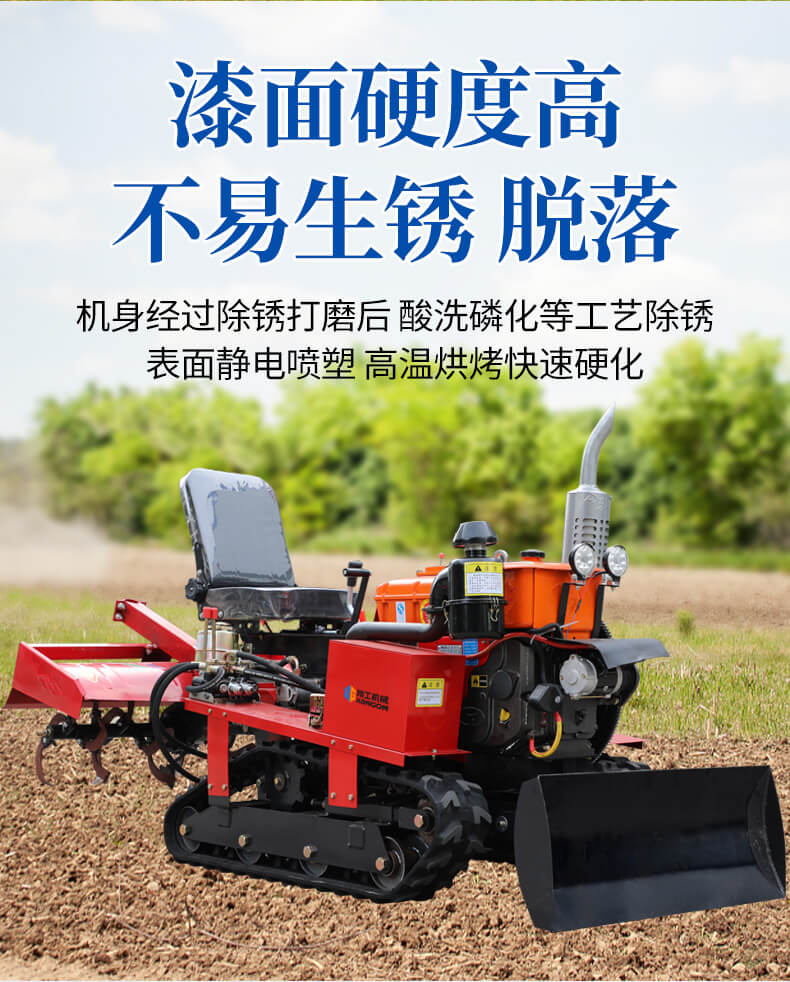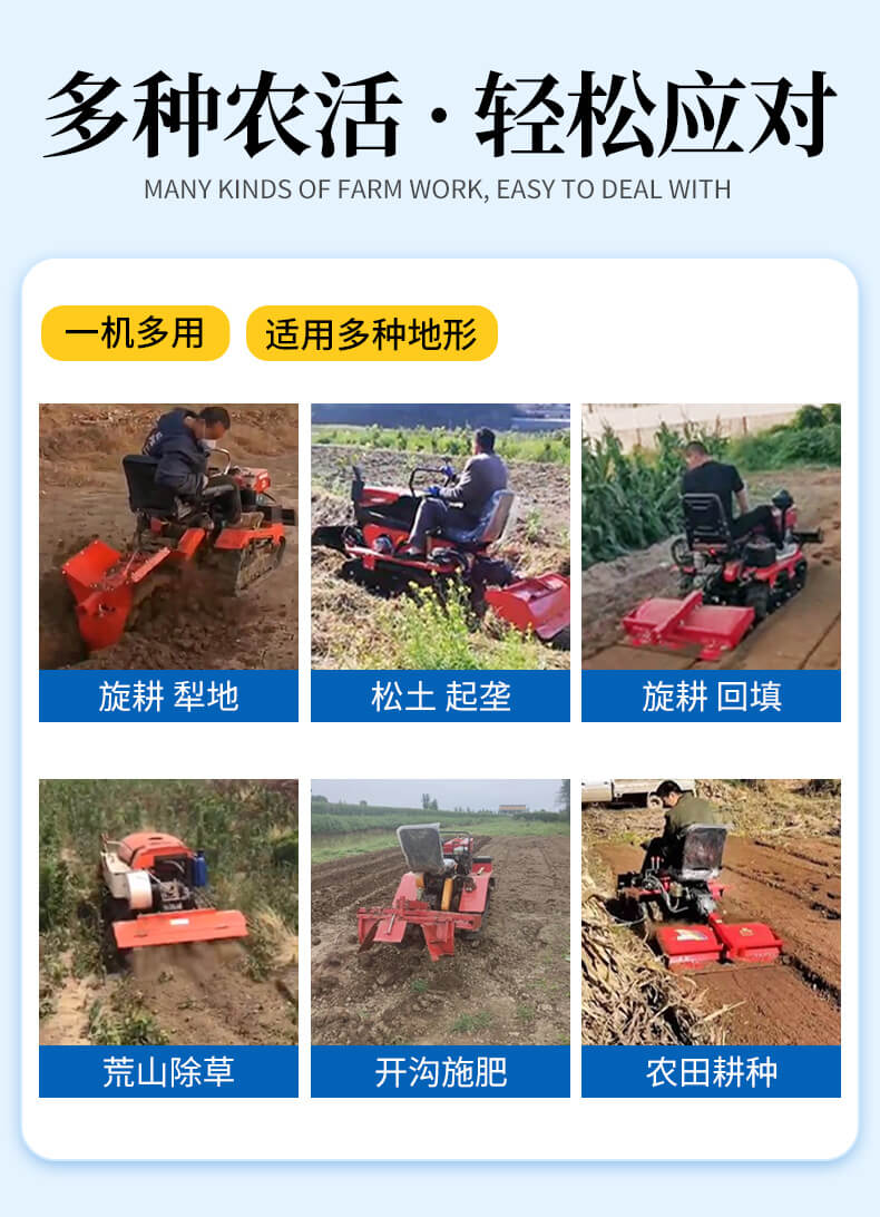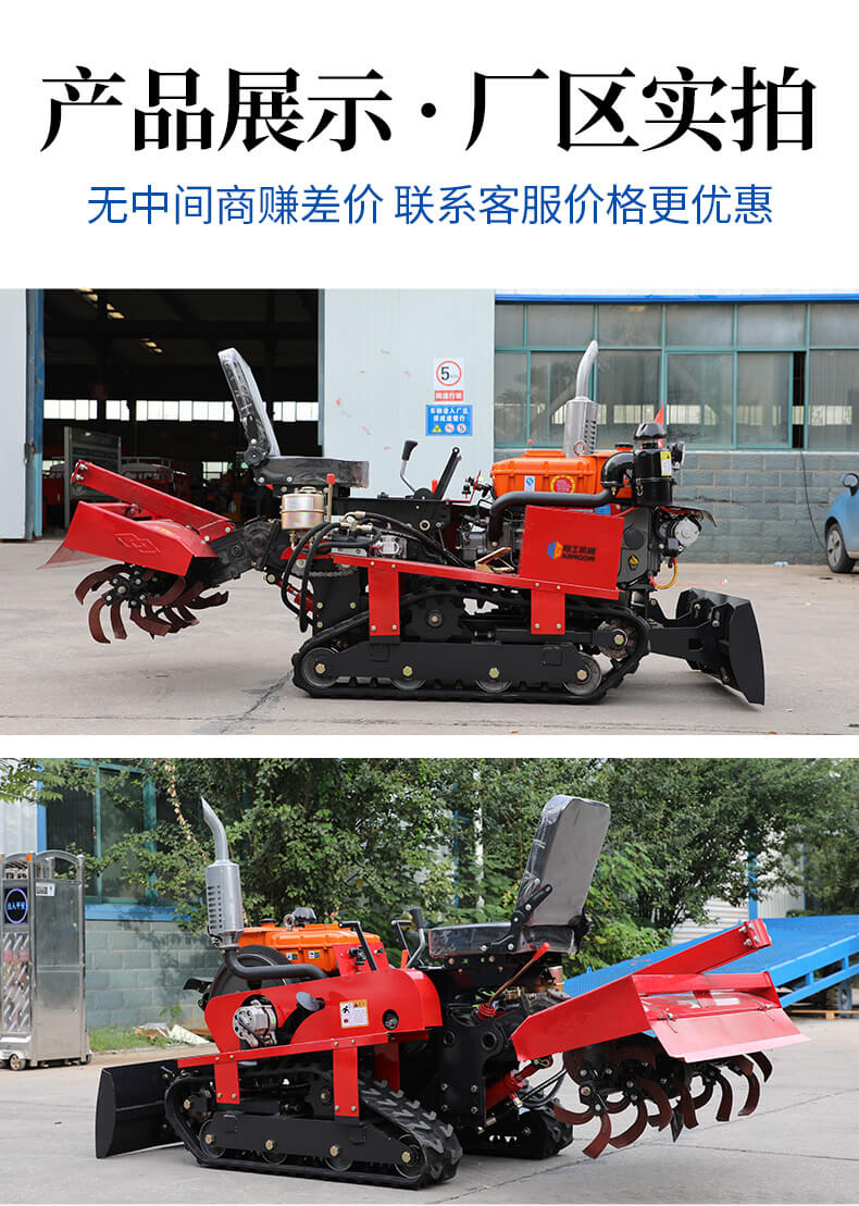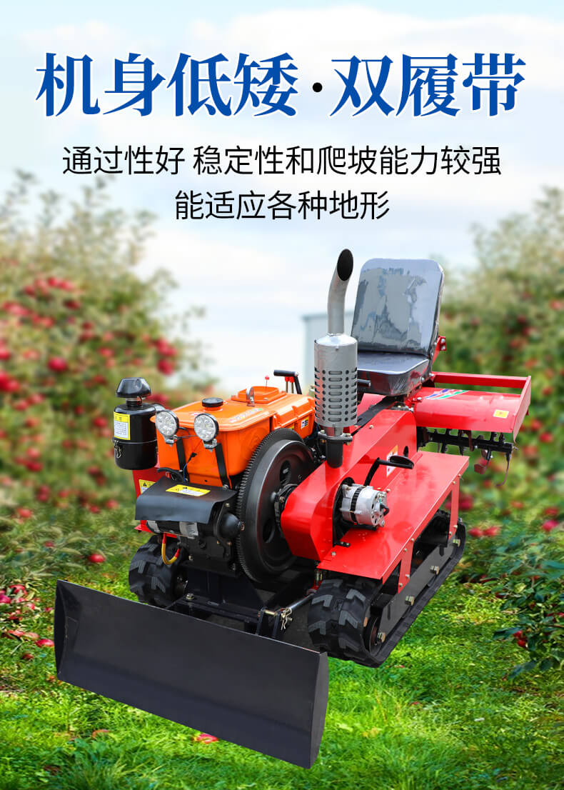 25馬力旱地履帶旋耕機適用于大面積、小面積清除雜草,適用于果園、農(nóng)田、玉米地、山地的除草作業(yè),打藥/旋耕/犁地/開溝施肥/回填/除草/起壟都可以。