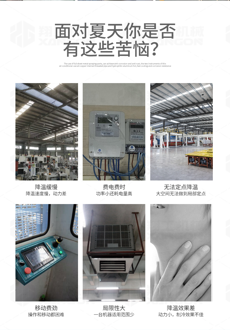 適應(yīng)各種大面積場所快速降溫:辦公場所降溫 汽車維修降溫 車間制冷 室內(nèi)制冷 集裝箱制冷 線上降溫 廚房降溫 車間崗位降溫
