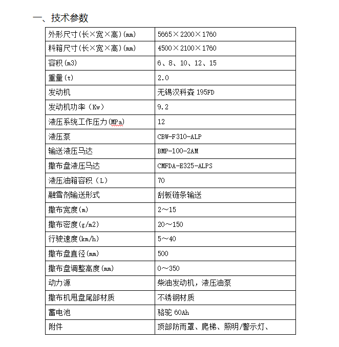 12、箱體采用V型料倉(cāng),結(jié)構(gòu)簡(jiǎn)單,使融雪劑自動(dòng)落料,出料完全,無(wú)殘留。